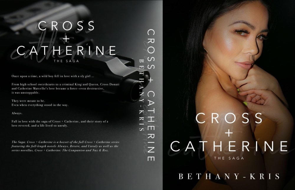 The Saga: Cross + Catherine is a boxset of the full Cross + Catherine series featuring the full-length novels Always, Revere, and Unruly as well as the series novellas, Cross + Catherine: The Companion and Naz & Roz.