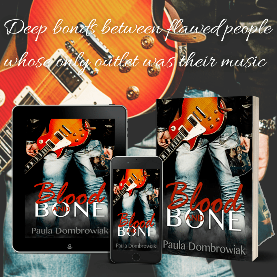 Paula Dombrowiak grew up in the suburbs of Chicago, Illinois but currently lives in Arizona. She is the author of Blood and Bone, her first adult romance novel which combines her love of music and imperfect relationships. Paula is a lifelong music junkie, whose wardrobe consists of band T-shirts and leggings which are perpetually covered in pet hair. Music is what inspires her storytelling.