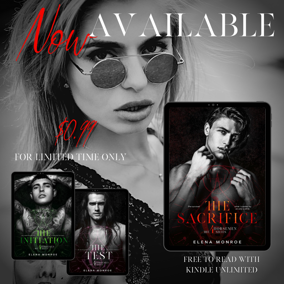 Find her on her social media through Twitter at @elenamonroe, Instagram at @elenamonroewrites, Facebook at @elenamonroewrites, and more