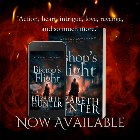 Bishop’s Flight is the fourth book in the Elemental Covenant series by Elizabeth Hunter, ten-time USA Today Bestselling author of the Irin Chronicles and the Elemental Mysteries.