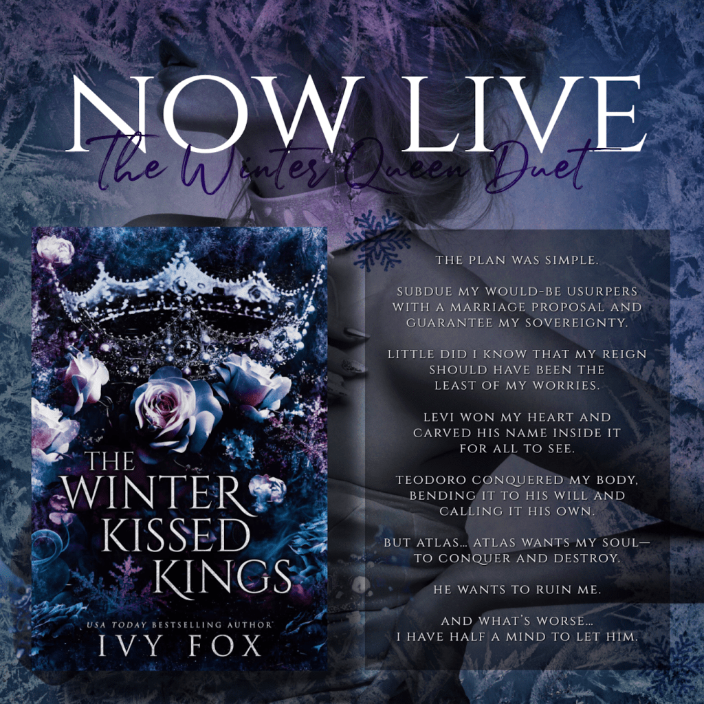 THE WINTER KISSED KINGS (The Winter Queen Duet Book 2) by USA Today bestselling author Ivy Fox is LIVE! The Winter Queen Duet is now complete!!! Don’t miss this angsty, enemies to lovers, why choose romance!