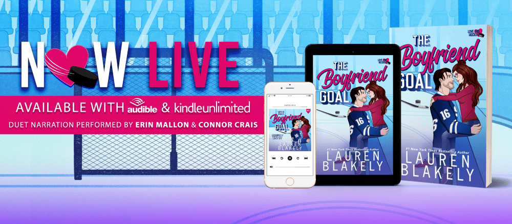 From #1 New York Times bestselling author Lauren Blakely, comes the first standalone hockey romance in her Love and Hockey series, THE BOYFRIEND GOAL! This sexy, teammate’s little sister, roommates-to-lovers, forbidden romance is now available in all formats, and free to read in Kindle Unlimited. Check out the excerpt below, and one-click your copy of this steamy, hockey romance with one hell of a meet-cute today!