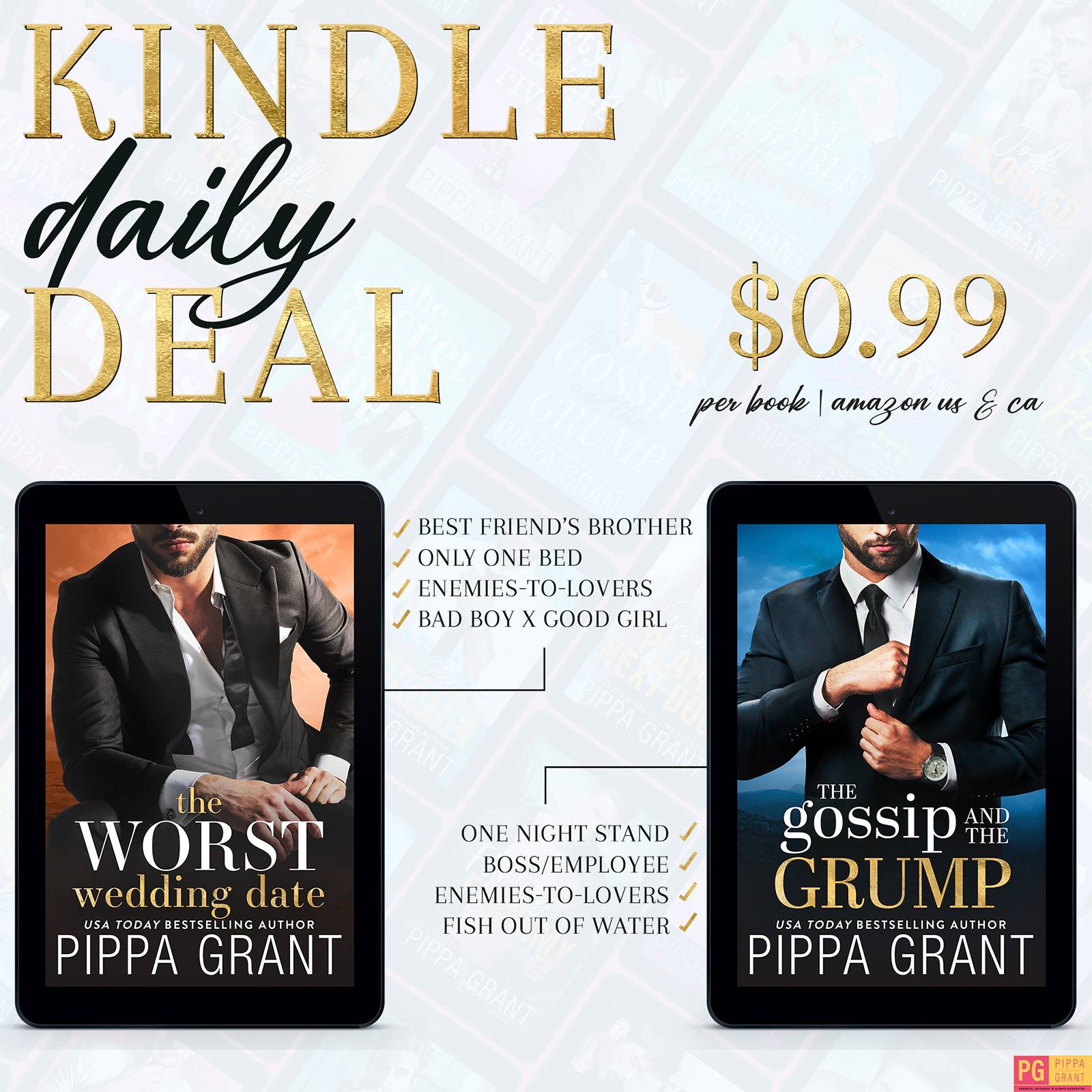 For TODAY ONLY, Amazon has put FOUR of Pippa Grant’s romcoms on sale for 99 CENTS EACH (Amazon US/CA only)!