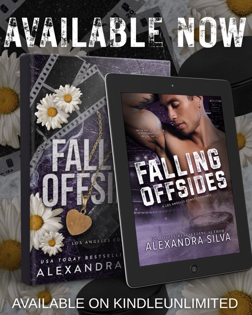 Falling Offsides, an all-new forced proximity, forbidden, hockey romance novella from bestselling author Alexandra Silva is now available!