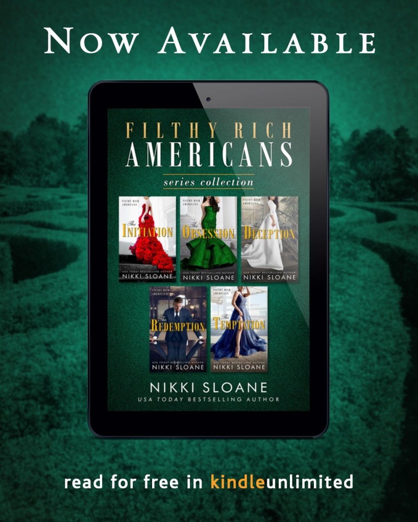 Binge Nikki Sloane’s captivating and USA Today bestselling Filthy Rich Americans series with the complete e-book collection which includes: The Initiation, The Obsession, The Deception, The Redemption and The Temptation.