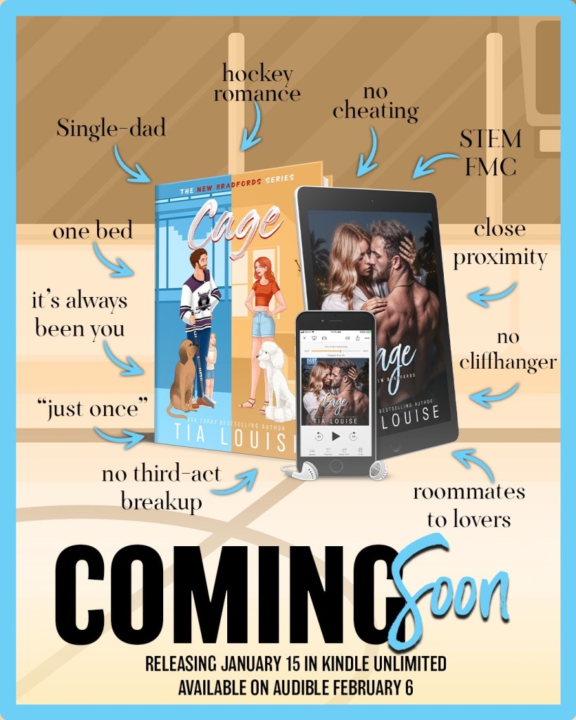 (Cage is a hockey romance with a broody single dad, a STEM FMC obsessed with dogs/not love, close proximity, roommates to lovers, “just once”, only one bed, family, and loads of spicy fun. No cheating, no cliffhanger, and no third-act breakup.)