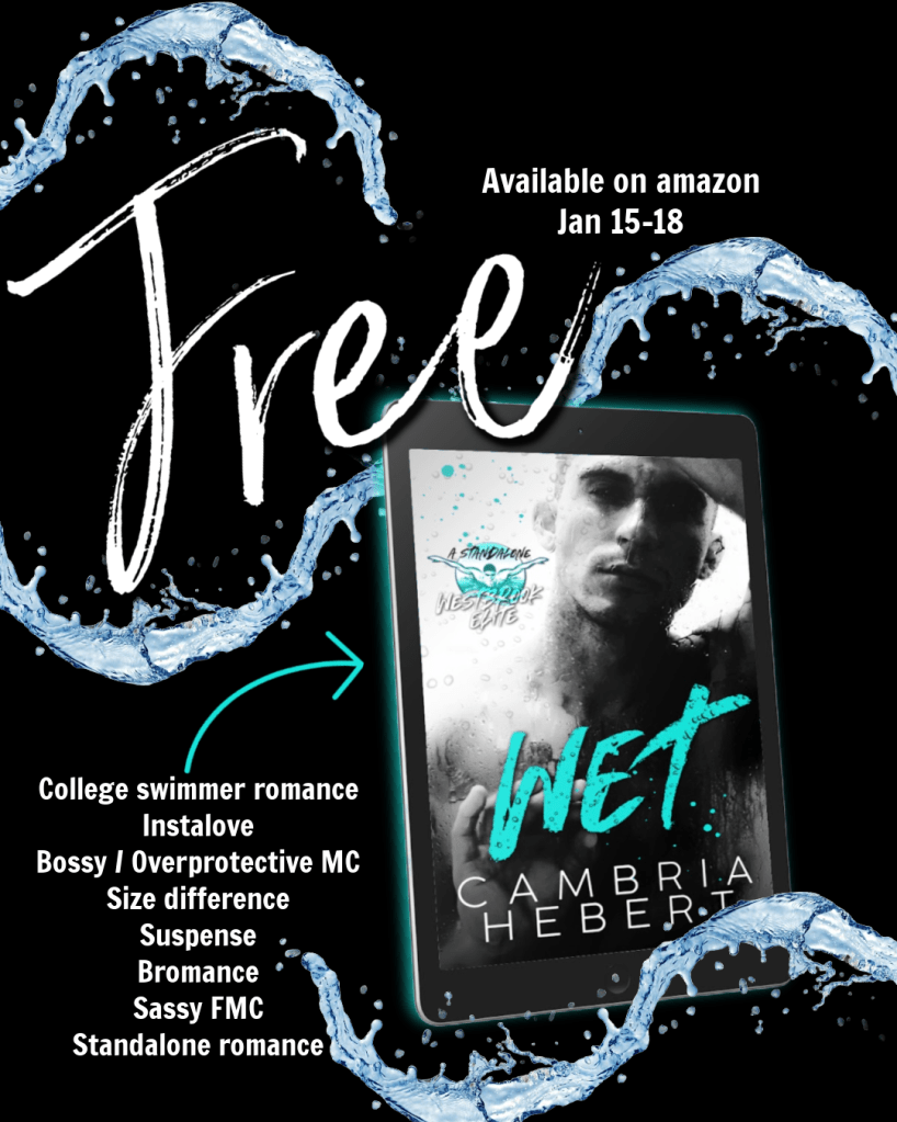WET – a standalone college sports romance by Cambria Hebert is currently FREE!