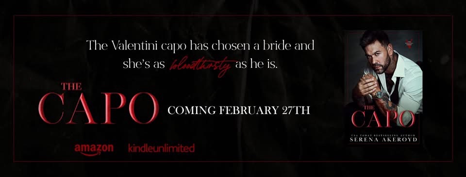 Serena Akeroyd takes you back to her Sicilian Mafia Series : The Valentini Family for the final time with The Salvation Duet. Book One: The Capo will be releasing February 27th 2026!