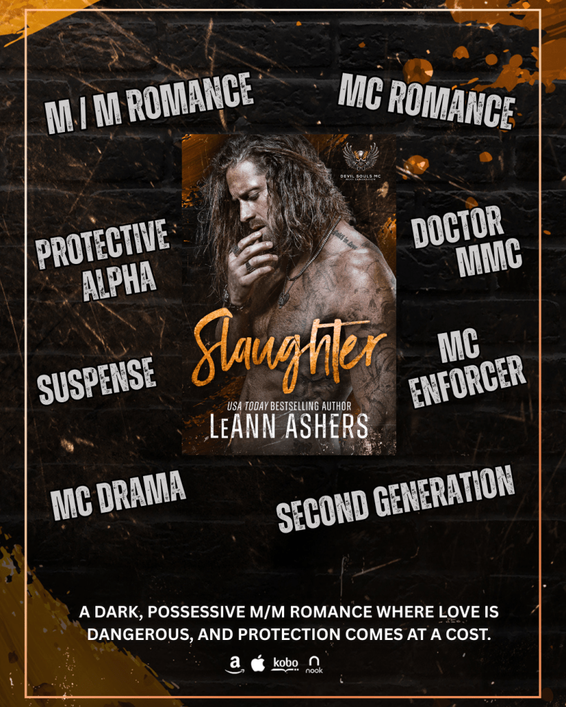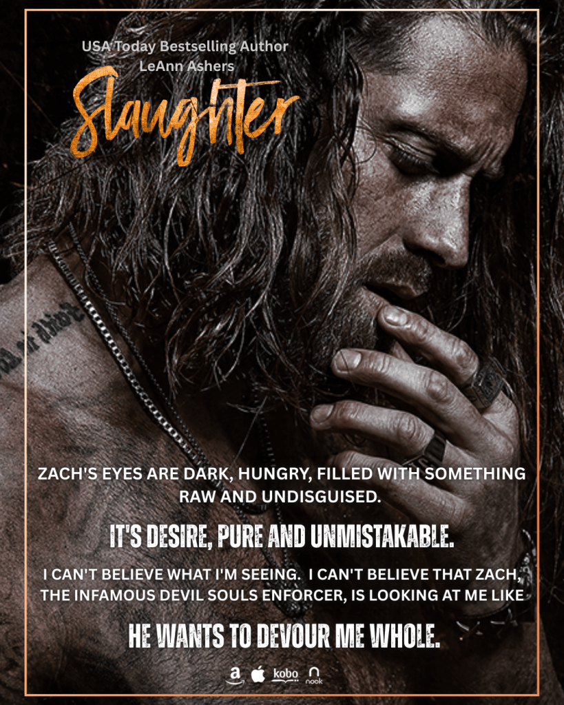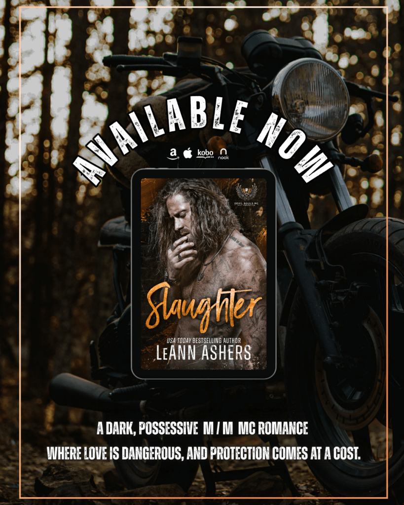 Zach & Xavier’s story is here. SLAUGHTER, a dark & possessive M/M & MC Romance by LeAnn Ashers is available on all platforms.
